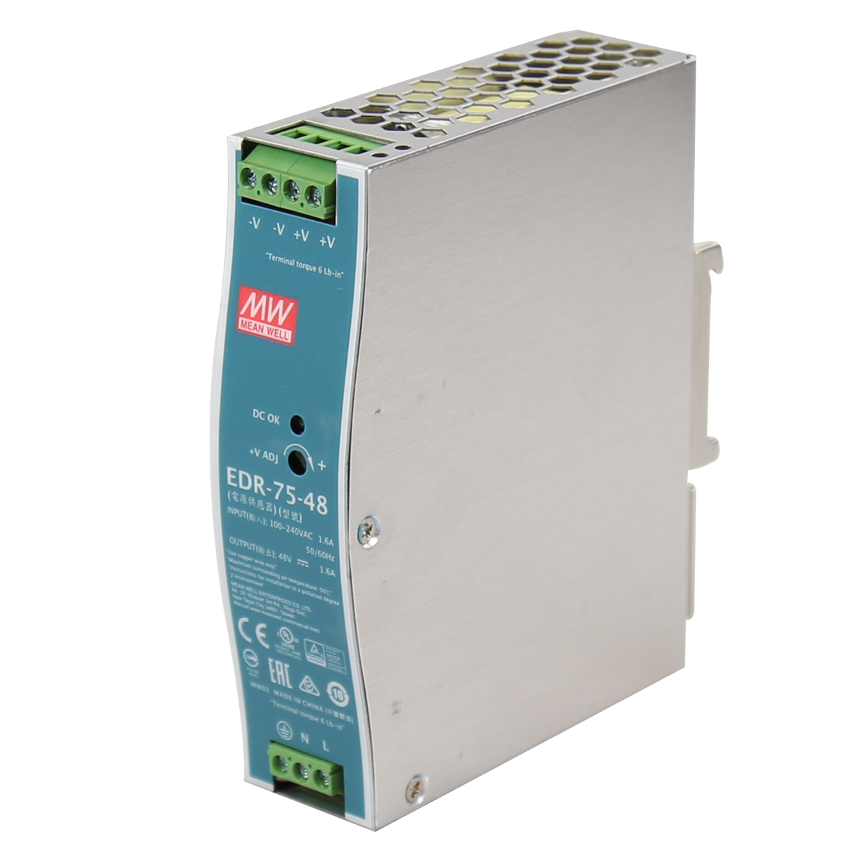 EDR-75-48 | 75 Watt Industrial Single Output DIN-Rail Power Supply - 48 VDC / 1.6 Amps | Antaira