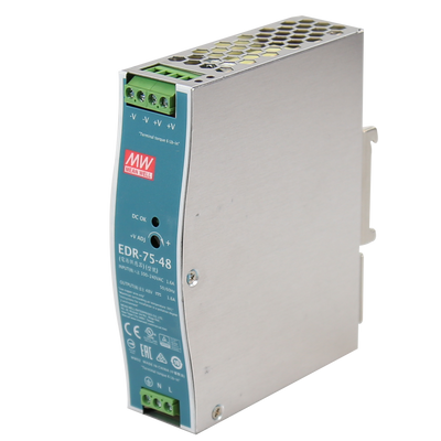 The EDR-75 DIN-Rail power supply series provides a 75 Watt solution. It can be installed on DIN rail TS-35/7.5 or 15. UL508 listed (for industrial equipment). Standard protections include short circuit, overload, over voltage, and over temp protection. LED indicators are provided for power on.Features
