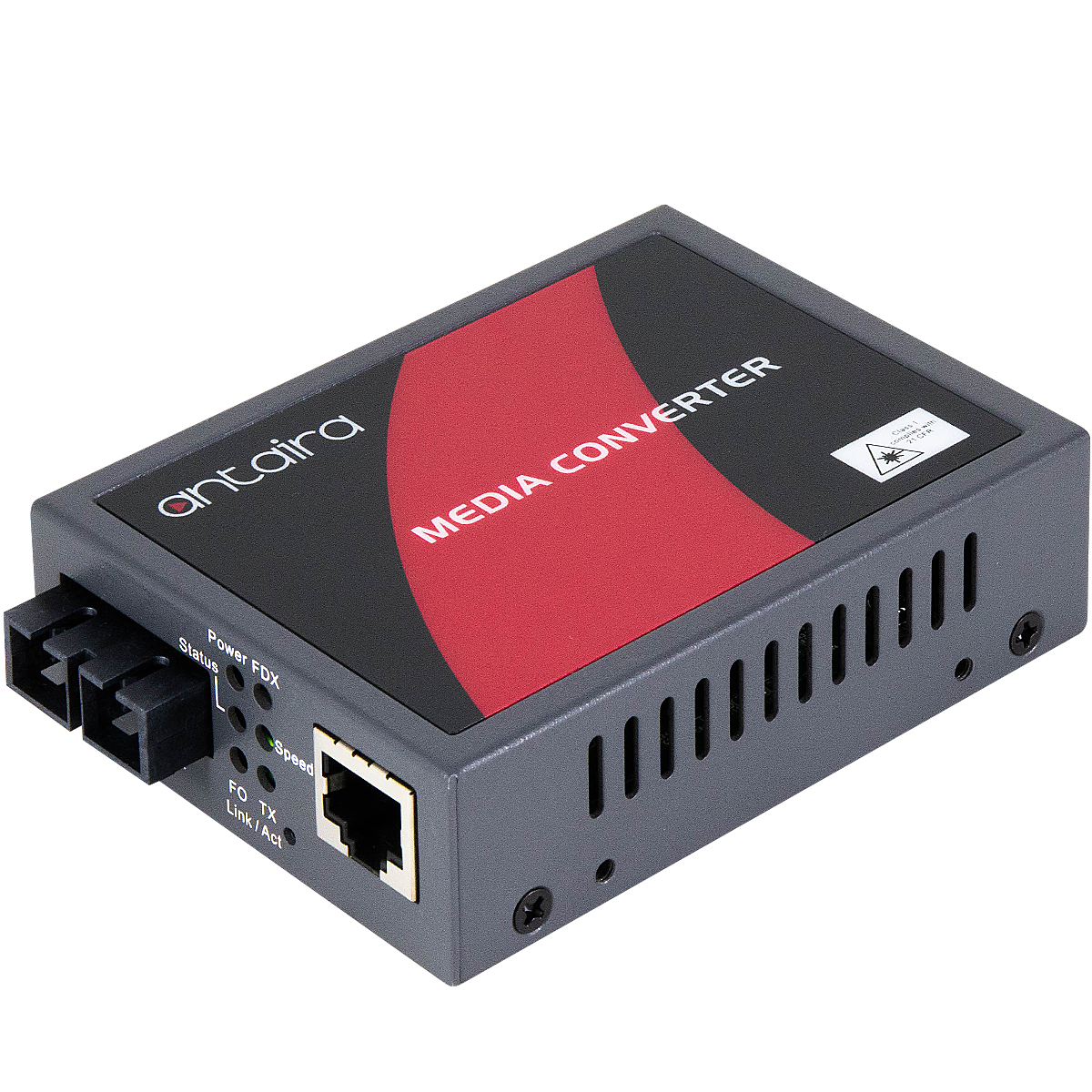 Antaira Technologies EMC-0201-SC-WB-S2 is a compact fiber to Ethernet media converter housed in a metal case and conforms to the FCC emissions standards. The EMC-0201-SC-WB-S2 industrial media converter features a standard single fiber (WDM) connector as well as the RJ45 Ethernet connector. The copper media converter is fully compliant with IEEE 802.3 and 802.3u Fast Ethernet. The industrial media converter features LED diagnostics for power, activity, link and Full/Half Duplex operations. The EMC-0201-SC-WB-S2 is a 10/100 single-mode fiber industrial media converter capable of communication up to 20KM.Features