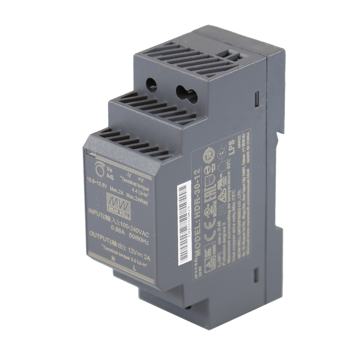 HDR-30-12 | 30 Watt Series / 12 VDC / 2.00 Amps Industrial Single Output DIN Rail Power Supply | Antaira