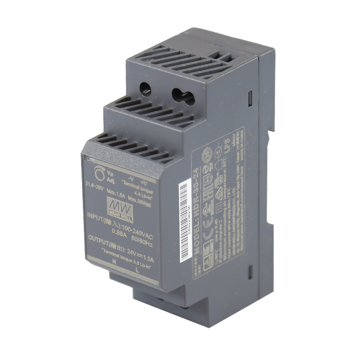 HDR-30-24 | 30 Watt Series / 24 VDC / 1.50 Amps Industrial Single Output DIN Rail Power Supply | Antaira