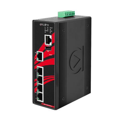 Antaira's LMX-0500-V2 series is a 5-port industrial managed Ethernet switch that is embedded with 5*10/100Tx fast Ethernet ports. This series is a fully manageable industrial Ethernet switch pre-loaded with standard Light Layer 3 network management software, and supports a user friendly web console interface for easy configuration.The LMX-0500-V2 series is IP30 rated, DIN-rail mountable, and has two wide operating temperature models for either a standard temperature range ( STD: -10°C to 70°C) or an extended temperature range (EOT: -40°C to 75°C). It also provides high EFT and ESD protection for any industrial networking application within factory automation, ITS, power/utility, water wastewater, and any other outdoor or harsh environment.Version 2 hardware is compatible with the latest Light Layer 3 firmware which permits static routes between VLANs.Features
