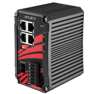 Antaira Technologies LNX-C501G-SFP is a 5-port industrial compact Gigabit unmanaged Ethernet switch embedded with 4*10/100/1000Tx Ethernet ports and 1*100/1000 dual rate SFP slot for fiber connection.The LNX-C501G-SFP is IP40 rated and DIN-rail mountable. There are also a standard temperature range (STD: -10°C to 65°C). It also provides high EFT and ESD protection for industrial networking applications, such as power/utility, water wastewater, oil/gas/mining, factory automation, security surveillance, ITS, and any other outdoor or harsh environment.Features