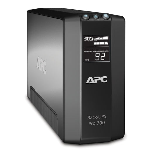 This APC Back-UPS Pro offers premium power protection for high performance computer systems, routers/modems, external storage devices, game consoles and other electronics in your home or business. The 700VA tower UPS has 6 total outlets, 3 of which are battery back up and surge protection, and 3 that are surge protection only. It has a surge energy rating of 354 Joules. Its dimensions are 7.48 x 3.58 x 12.2 inches and 15.76 lbs. The Back-UPS Pro family offers guaranteed power protection for high-performance computer systems, routers, external storage devices, game consoles, and other home and business electronics. This UPS has a 3-year warranty and CE product certification. It is compatible with a dedicated user-replaceable battery, and the APC replacement battery cartridge helps restore UPS performance to the original specifications.Specifications