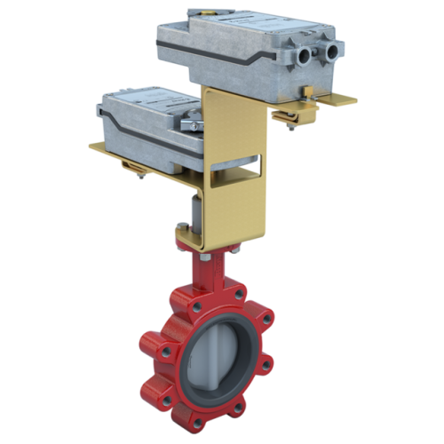 Butterfly Valve | 2 Way | 4 Inch | Nylon Coated Disc | 175 PSI | DUAL Mounted 24 VAC/DC Spring Return Actuators | Normally Open | Modulating Control