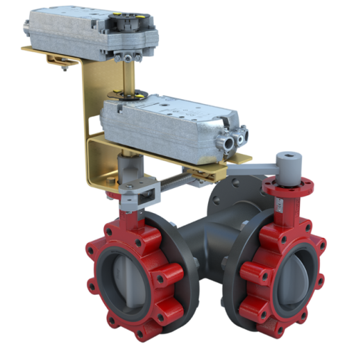 - DUAL MOUNTED 24 VAC non-spring return actuators.