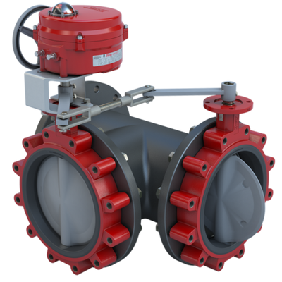 Butterfly Valve | 3 Way | Flow Configuration 6 | 8 Inch | Nylon Coated Disc | 175 PSI | 120 VAC Non-Spring Return Actuator With Heater | Modulating Control