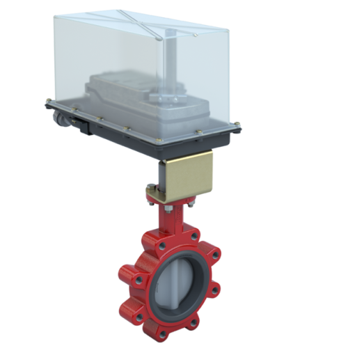 4 inch Lugged Butterfly Valve Resilient Seated | ANSI Class 125/150 | DI body | SS Disc | CV 740 | Normally Closed | Damper & Valve actuator | 120/240 Vac | 177 lb-in | on/off | Spring Return | Weather Shield for DS-180 Actuator