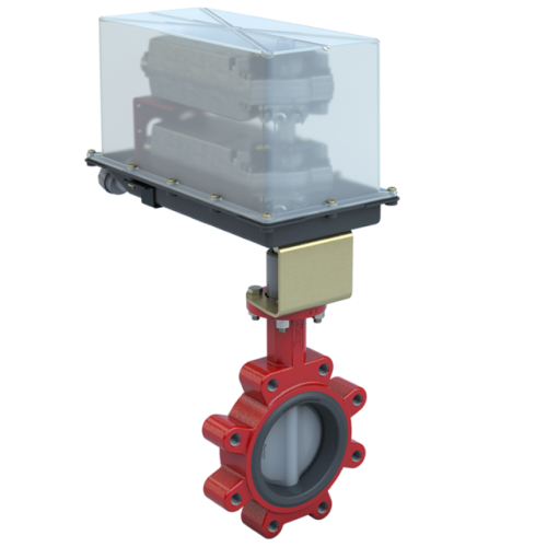 4 inch Lugged Butterfly Valve Resilient Seated | ANSI Class 125/150 | DI body | SS Disc | CV 740 | Normally Open | Damper & Valve actuator | 24 Vac | 310 lb-in | floating | Non-Spring Return | Dual | Time out | Weather Shield for Tandem DC-310 Actuators