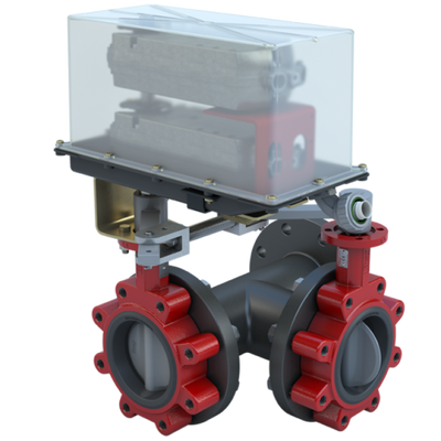 5 inch 3-Way Lugged Butterfly Valve Resilient Seated | ANSI Class 125/150 | DI body | SS Disc | CV 1218 | | Damper & Valve actuator | 24 Vac | 310 lb-in | floating | Non-Spring Return | SW | Dual | Time out | Weather Shield for Tandem DC-310 Actuators