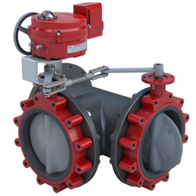Butterfly Valve | 3 Way | Flow Configuration 1 | 10 Inch | Stainless Disc | 50 PSI | 24 VAC /30 VDC Actuator With Heater And Battery Backup Failsafe Return | Modulating Control
