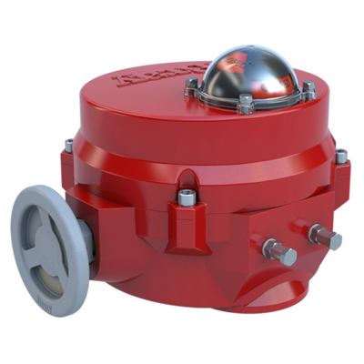 - Manual declutchable override hand wheel, pull to engage, push to disengage.