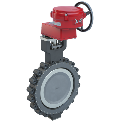 20 inch Lugged Butterfly valve High Performance | ANSI Class 150 | CS body | CV 13500 | Normally Closed | 120 VAC | Two position | 18000 lb-in | NEMA 4