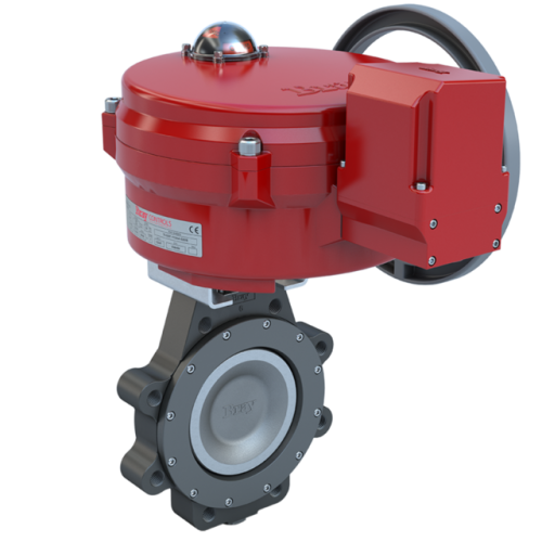 8 inch Lugged Butterfly valve High Performance | ANSI Class 300 | CS body | CV 2000 | Normally Open | 24 VAC/30VDC | Two position | 5000 lb-in | NEMA 4 | Heater | & Battery Backup unit