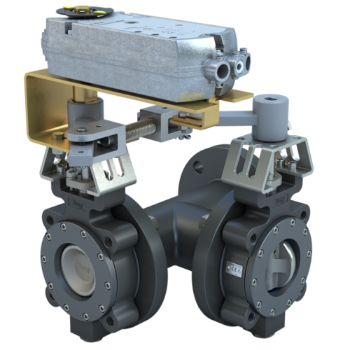 MKL3-1025/DCM24-310 | 2.5" 3-Way Lugged Butterfly valve High Performance | ANSI Class 150 | CS body | CV 78 | Damper & Valve actuator | 24 Vac | 310 lb-in | modulating | Non-Spring Return | Bray