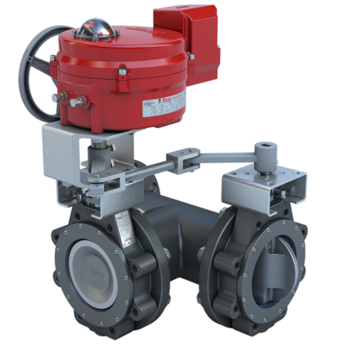 MKL3-2080/70-24-0201H-BBU | 8" 3-Way Lugged Butterfly valve High Performance | ANSI Class 150 | CS body | CV 2800 | 24 VAC/30VDC | Two position | 2000 lb-in | NEMA 4 | Heater | & Battery Backup unit | Bray