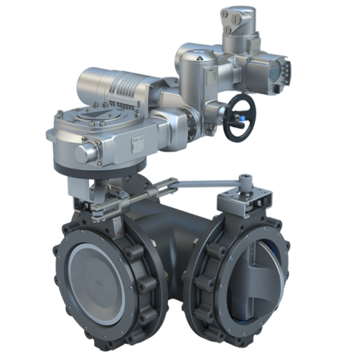 MKL3-2160/AU-2130 | 16" 3-Way Lugged Butterfly valve High Performance | ANSI Class 150 | CS body | CV 9800 | 120 VAC | On/Off | 21300 lb-in | NEMA 4 | Bray