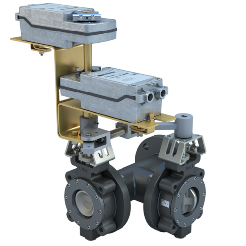 MKL3-4025/DS24-180-A-D | 2.5" 3-Way Lugged Butterfly valve High Performance | ANSI Class 150 | CS body | CV 160 | Damper & Valve actuator | 24 VAC/DC | 177 lb-in | on/off | Spring Return | SW | Dual | Bray