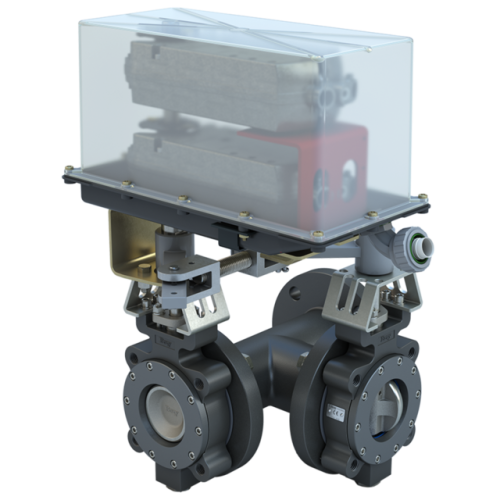 MKL3-4030/DC24-310-TA-D-WS | 3" 3-Way Lugged Butterfly valve High Performance | ANSI Class 150 | CS body | CV 185 | Damper & Valve actuator | 24 Vac | 310 lb-in | floating | Non-Spring Return | SW | Dual | Time out | Bray