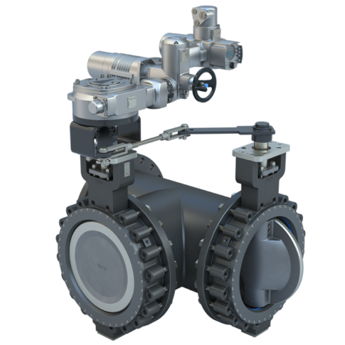 MKL3-5180/AU-4068SV | 18" 3-Way Lugged Butterfly valve High Performance | ANSI Class 150 | CS body | CV 5100 | 120 VAC | Modulating | 40680 lb-in | NEMA 4 | Bray