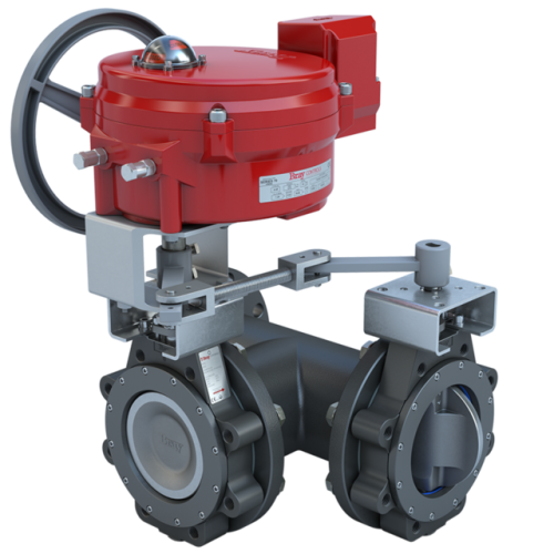 MKL3-6100/70-24-0501H-BBU | 10" 3-Way Lugged Butterfly valve High Performance | ANSI Class 150 | CS body | CV 4300 | 24 VAC/30VDC | Two position | 5000 lb-in | NEMA 4 | Heater | & Battery Backup unit | Bray