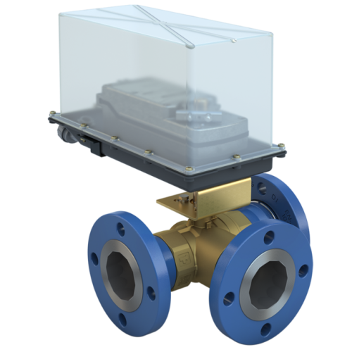 2.5 inch | STM Flanged Characterized ball valve | 3way | CV 47 | Damper & Valve actuator | 24 VAC/DC | 177 lb-in | on/off or floating | Spring Return | Weather Shield for DS-180 Actuator