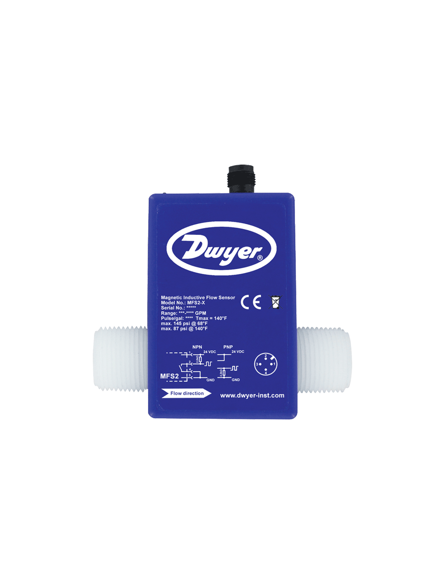 MFS2-3 | Magnetic inductive flow sensor | range .66 to 13.2 GPM (2.5 to 50 LPM) | 3/4" male NPT | Dwyer