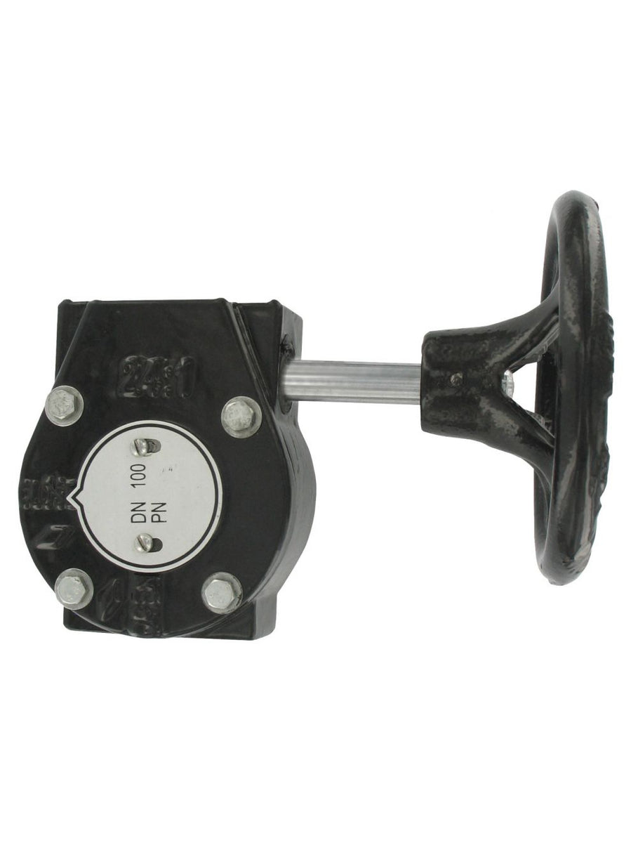 Gear operator, works with 12" size BFV Series butterfly valves, min. output torque 8851 in-lbs. (1000 N m), max. output torque 10621 in-lbs. (1200 N m).