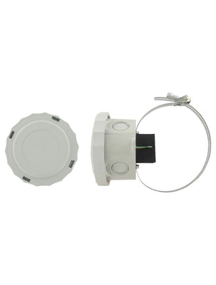 The Series S2-4 Weatherproof Surface Temperature Assembly is ideal for monitoring the temperature of distribution lines when it is not possible to penetrate the pipe. The strap-on connection quickly wraps around a pipe and can be securely tightened using a flat head screw driver. The twist-off housing cover reduces installation time. The housing has multiple knockout conduit holes which allows the installer to bring conduit to any side of the housing. The Series S2-4 can be ordered with a choice of 11 output options that allow it to communicate to any standard building control system.