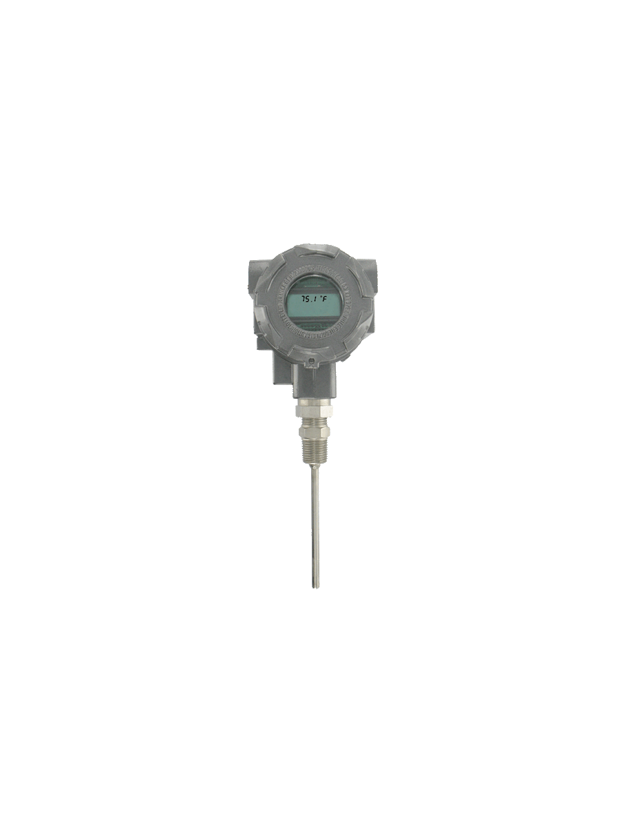 Explosion-proof RTD temperature transmitter, 15" probe, with LCD display.