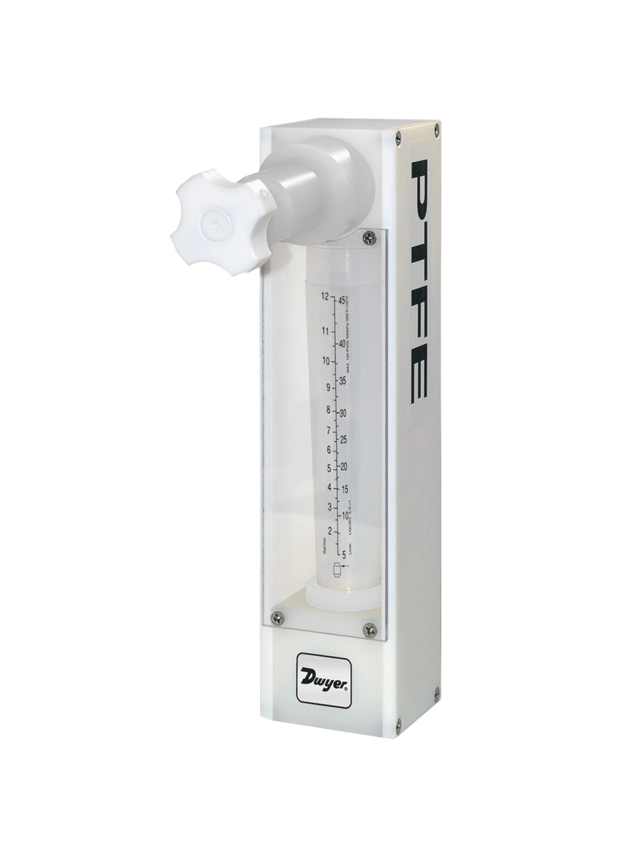 TVA24112 | All fluoropolymer flowmeter | 125 mm scale | 3/4" female NPT | flow rate 7.93 GPM (30 LPM) water. | Dwyer