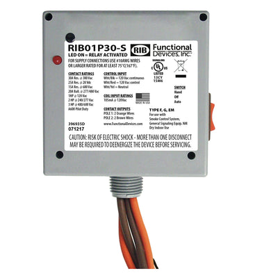 RIB01P30-S | Enclosed Relay 30Amp DPST + Coil Side Override 120Vac1 | Functional Devices