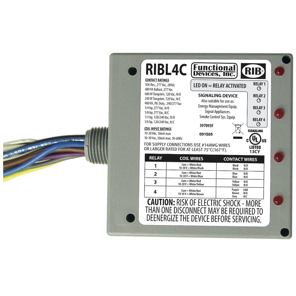 RIBL4C | Enclosed Relays 10Amp 3 SPST-NO + 1 SPDT 10-30Vac/dc | Functional Devices