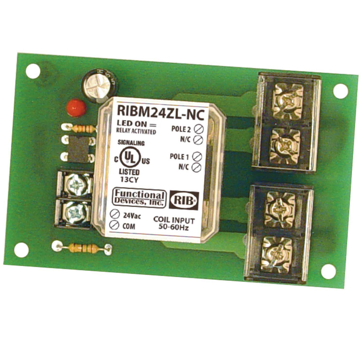RIBM24ZL-NC | Panel Relay 4.00x2.35in 30Amp DPST-NC 24Vac/dC | Functional Devices