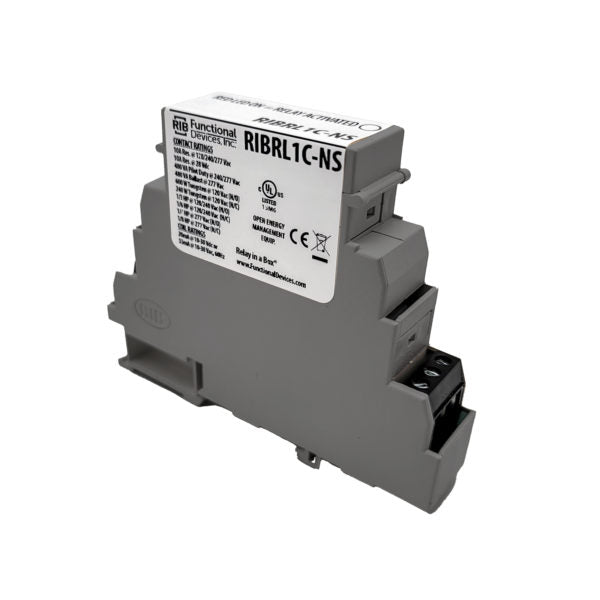 RIBRL1C-NS | DIN Rail Mount Relay, 10 Amp SPDT, 10-30 Vac/dc Coil | Functional Devices