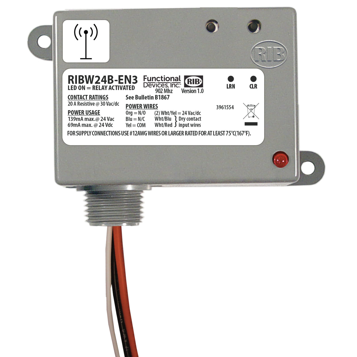 RIBW24B-EN3 | EnOcean 902 Mhz Enclosed Relay 20Amp 24Vac 2-Way Wireless Dry-Cont. Input | Functional Devices