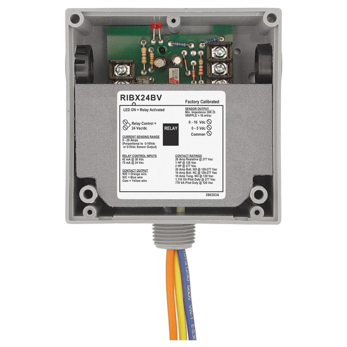 RIBX24BV | Enclosed Internal AC Sensor, Analog, + Relay 20Amp SPDT 24Vac/dc | Functional Devices