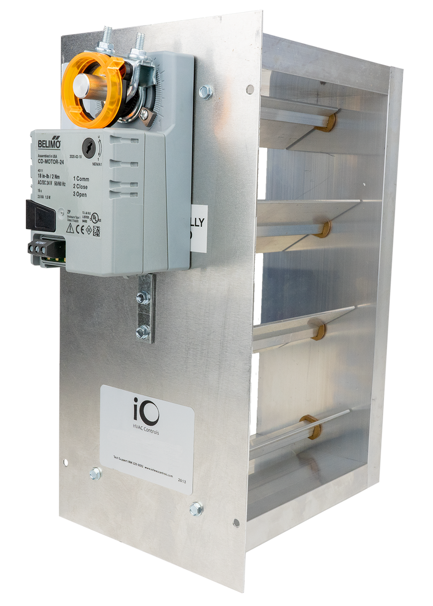 CD-3210-BM | 32 x 10 Carrier/Bryant Rectangular Zone Damper - Belimo 3 Wire Actuator - Bottom Mount | iO HVAC Controls