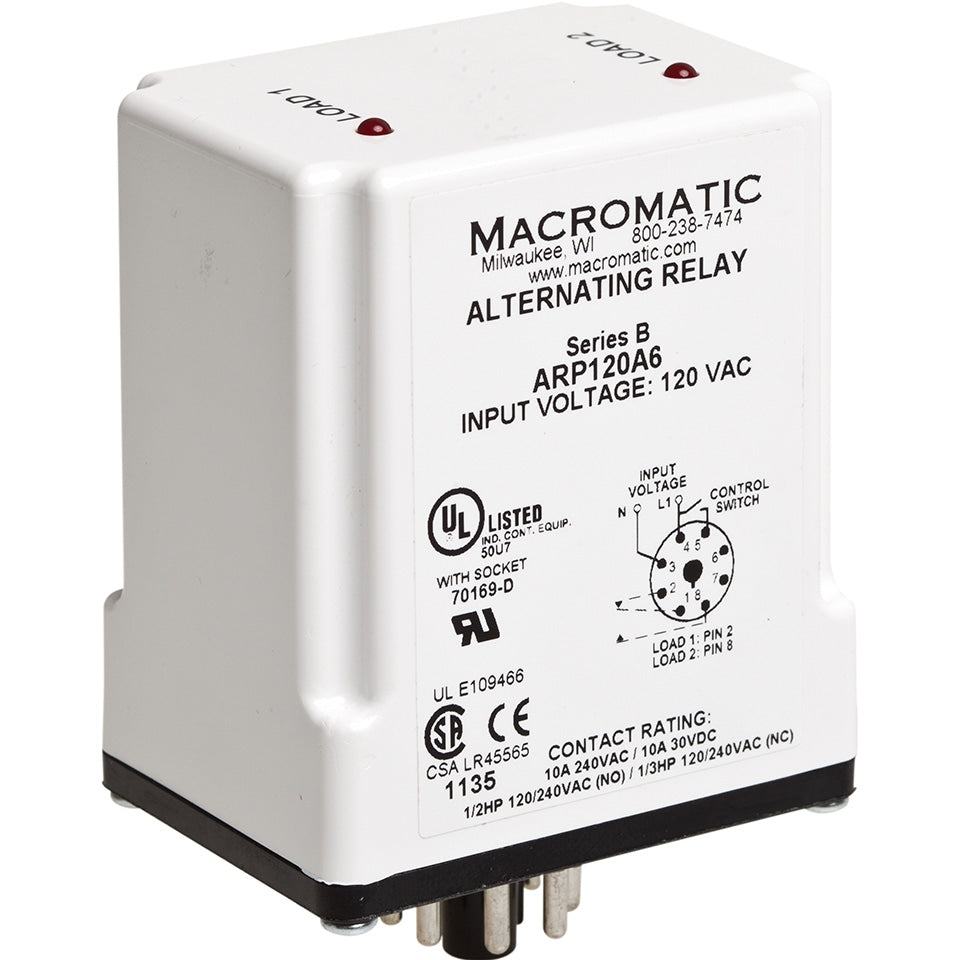 ARP240A3 | Duplex Alternating Relay | 10 Amp | 240VAC | DPDT | 8 pin | cross wired | Macromatic