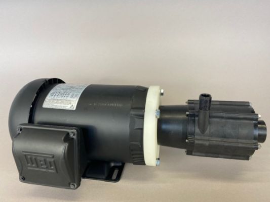 March Pump’s industrial TE-4MSR-MD is an American seal-less centrifugal magnetic drive pump ideal for applications such as chemical recirculation, chemical transfer, and deionized water systems. It is capable of generating a maximum flow of 28 gallons per minute at 10 feet, and its maximum head is 120 Feet (51.9PSI).