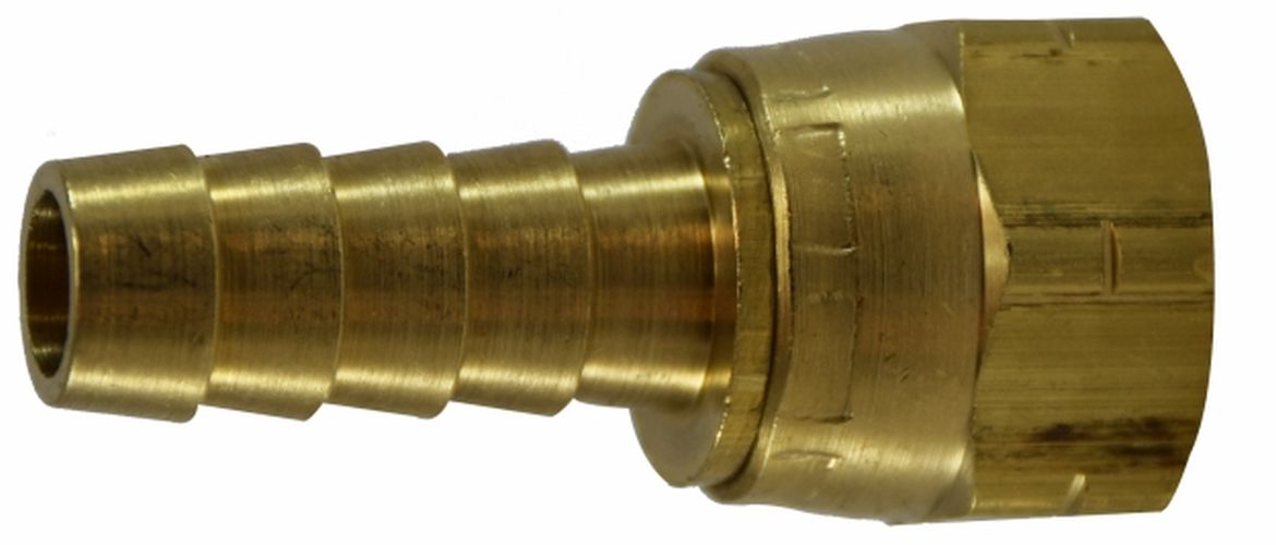 3/8 BARB X 3/8 SAE CRIMP STYLE, Brass Fittings, Hose Barb, Female 45 Deg Flare Swivel