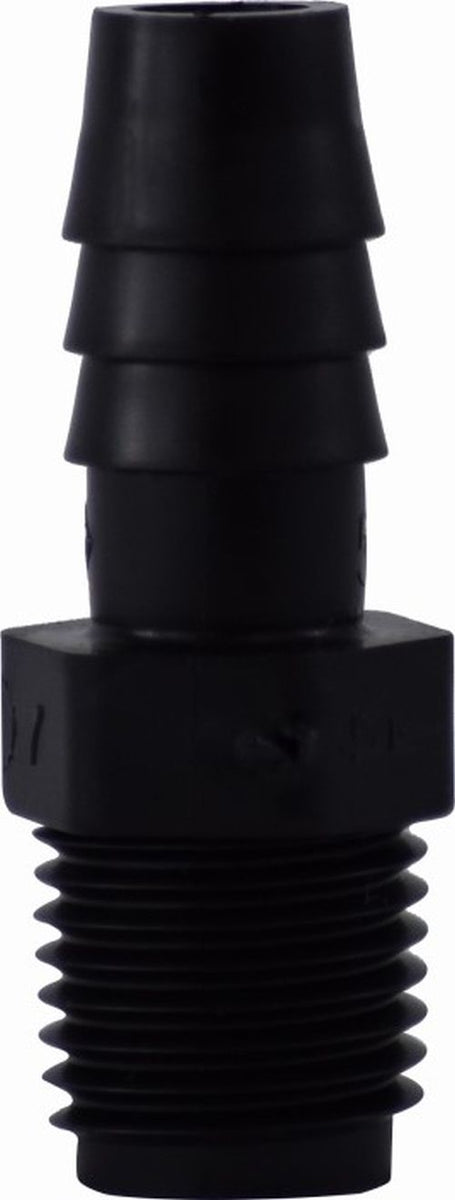 33014B | 3/8 X 1/2 (HB X MIP BLK POLY ADPT), Plastic Fittings, Plastic Hose Barbs, Male Adapter Hose ID x MIP | Midland Metal Mfg.