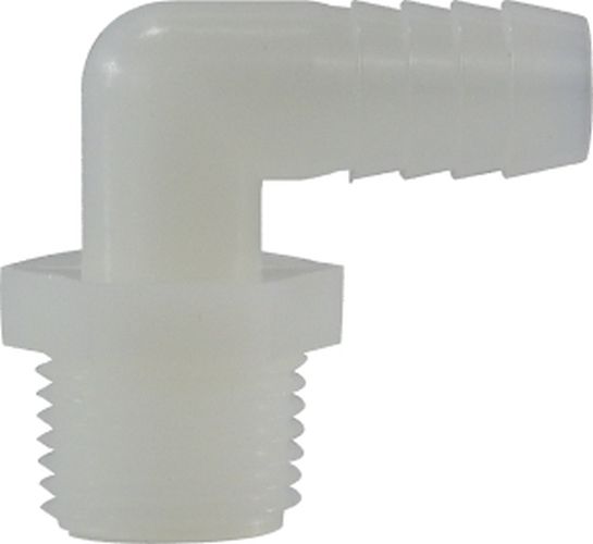 5/8 X 3/4 (HB X MIP WHT NYLN ELB), Plastic Fittings, Plastic Hose Barbs, Elbow Hose ID x Male Pipe