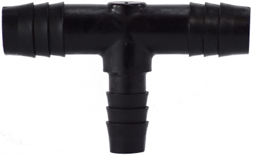 1/4X3/8 BLK POLY RED HB BRANCH T, Plastic Fittings, Plastic Hose Barbs, Reducing Tee