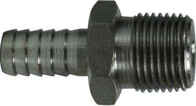 34595 | 3/8 SS BARB X 1/2 MIP, Brass Fittings, BEVERAGE FITTINGS, NPT TO BARB ADAPTER | Midland Metal Mfg.