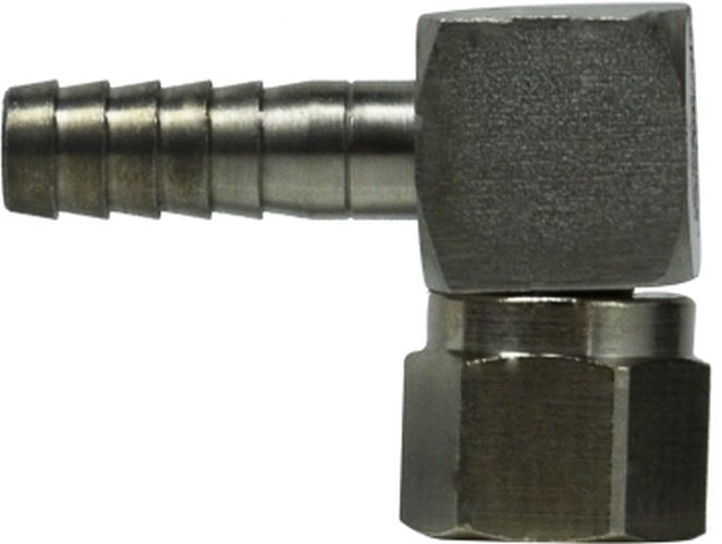 1/4 SS BARB X FE FLARE SWIVEL, Brass Fittings, BEVERAGE FITTINGS, SWIVEL TO BARB ELBOW