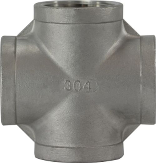 62392 | 3/8 304 STAINLESS STEEL CROSS, Nipples and Fittings, 304 And 316 150# Stainless Steel Fittings, Cross 304 S.S. | Midland Metal Mfg.