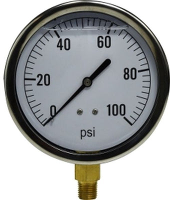 4" 0-100psi 1/4" LM, Pneumatics, Gauges, Liquid Filled Gauge 4 Face 1/4 Lower Mount