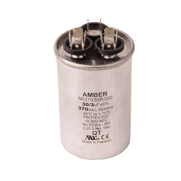Shop our HVAC supply store today for the best prices and fast shipping on all your industrial supplies! This DiversiTech® 3GR0330 Motor Run Capacitor, Round, 30+3µF 370 volts dual capacitance round, metal can capacitors are designed for continuous run. Guaranteed for 10,000 hours of life under normal operating conditions. Operating life of 94% at 60,000 hours Used for heavy duty continuous applications such as furnace blower and Conductors fan motors.