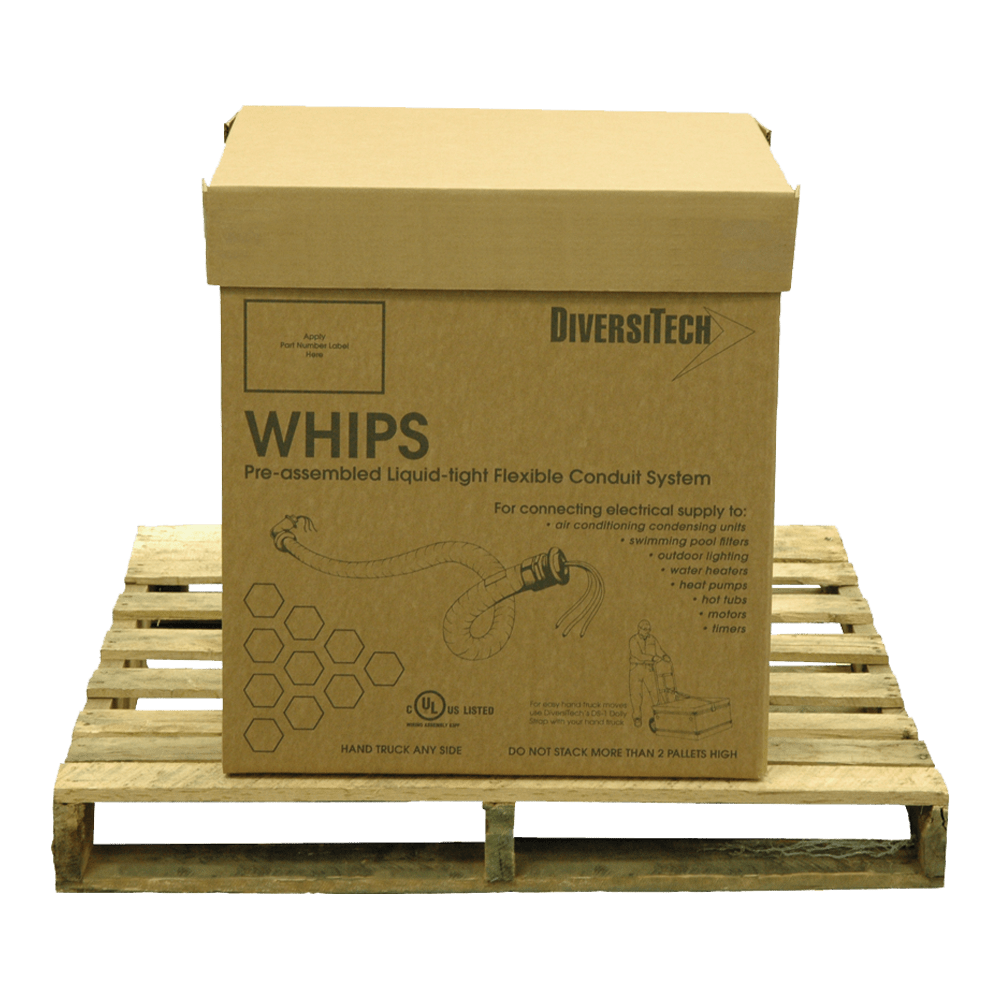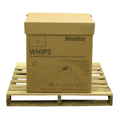 Whip Ultra NM (3/4x4ft) by DiversiTech. DiversiTech Whip Ultra NM is a 3/4" x 4' Non-Metallic Whip that is designed to connect condensing units with air handlers. DiversiTech is a leading manufacturer of HVAC/R products and accessories. Shop our HVAC supply store for the best prices and fast shipping! The DiversiTech® B6-34-4NM DiversiWhips Non-Metallic Connectors, 3/4 in. x 4 ft., #8 THHN wire are now available in a convenient, bulk packaged pallet pack at a discounted price. Pallet pack makes an attractive floor standing display. 1 straight and 1 90 degrees metallic or non metallic connector.